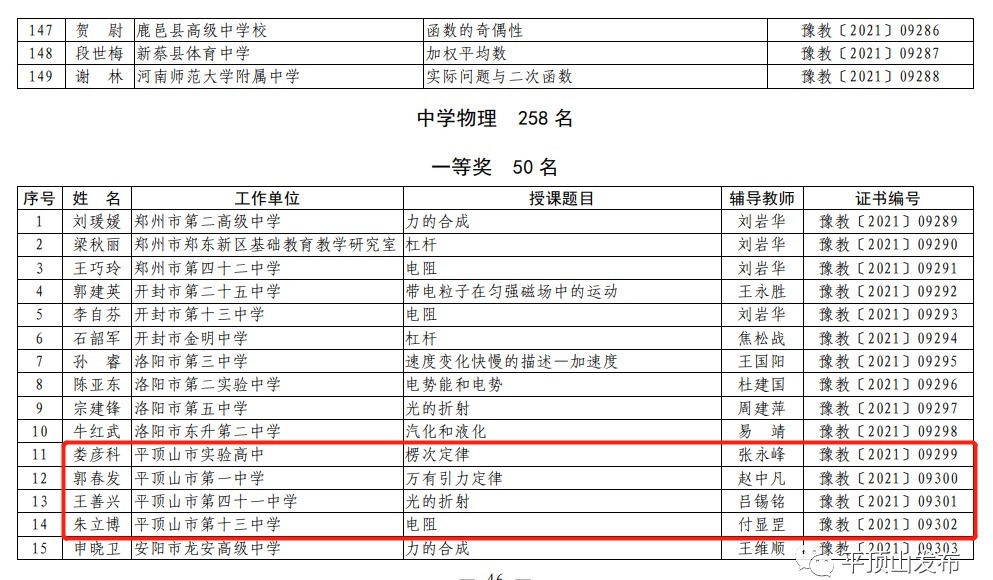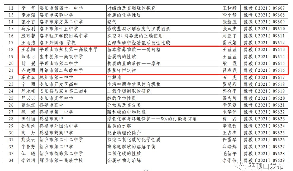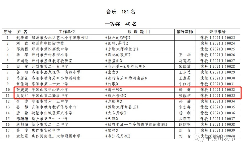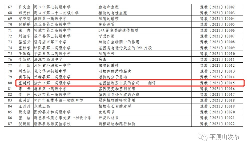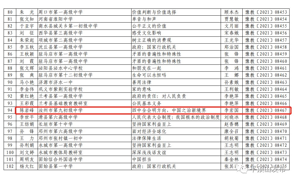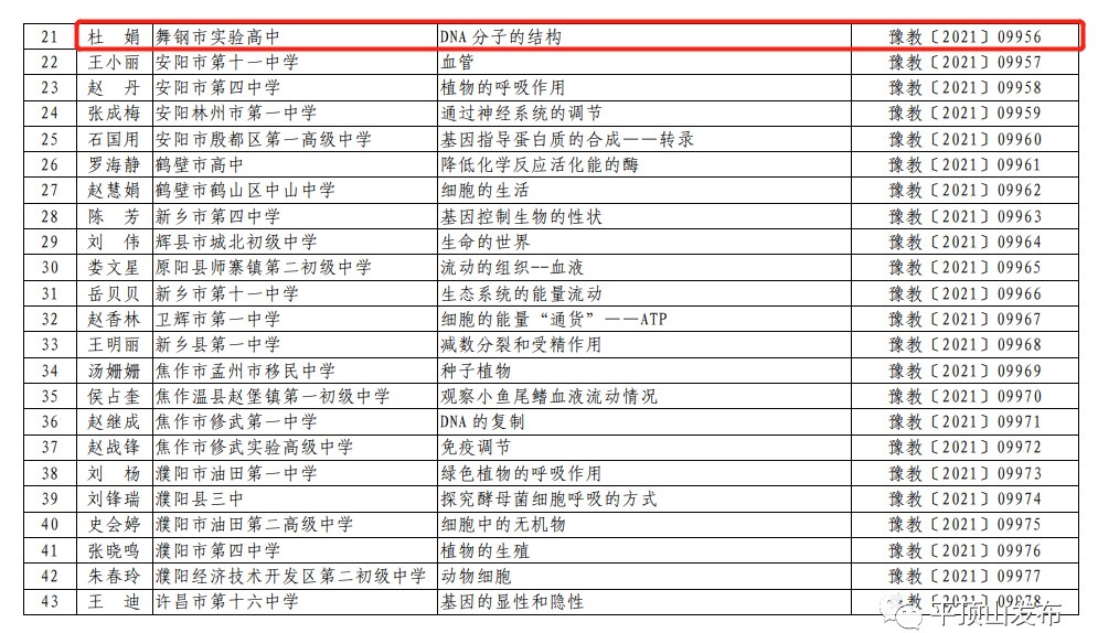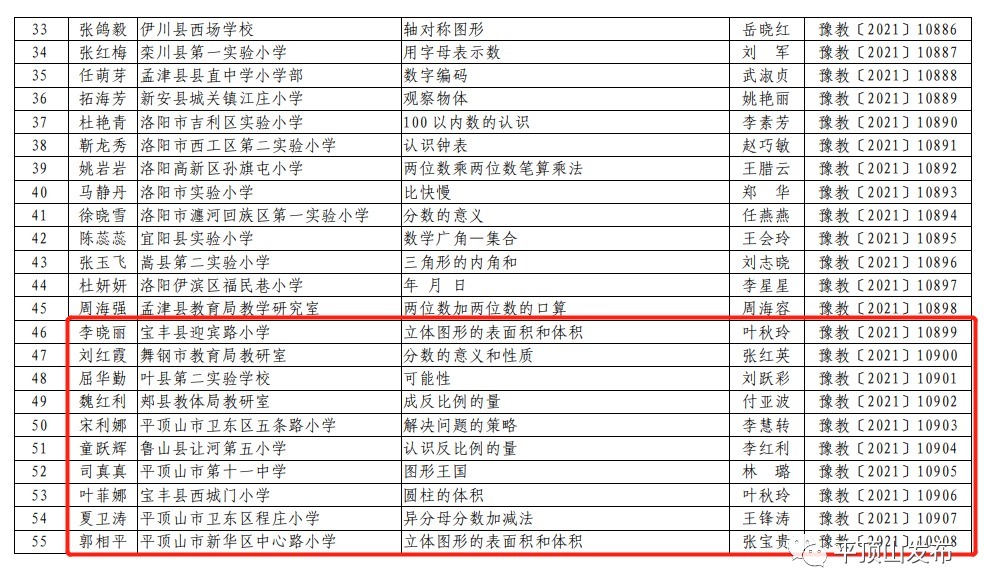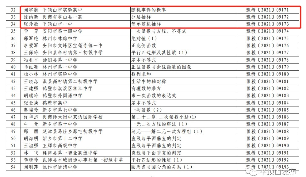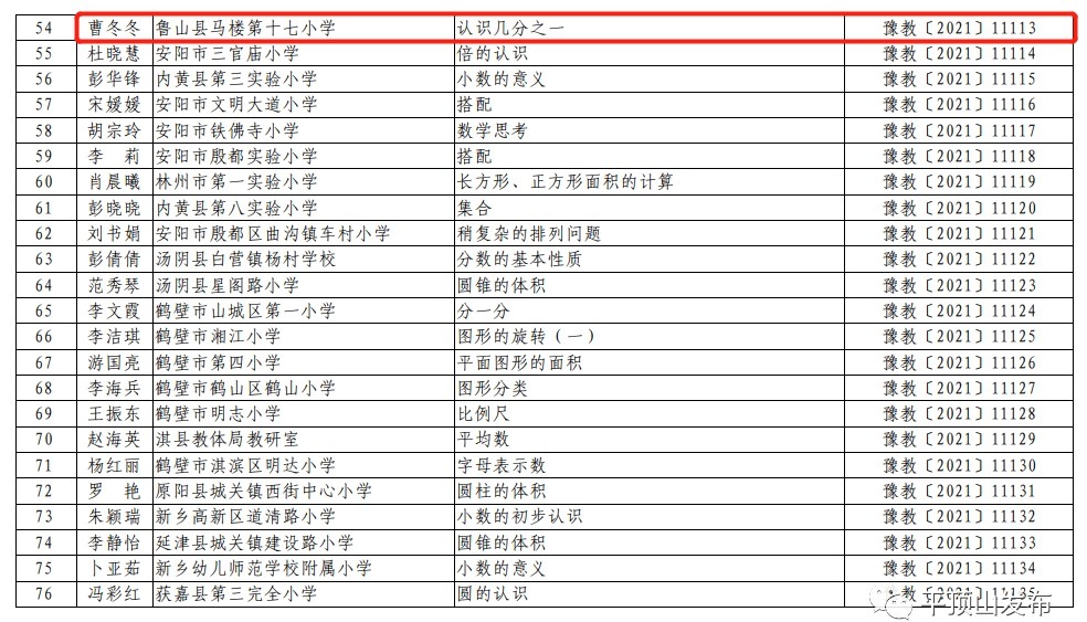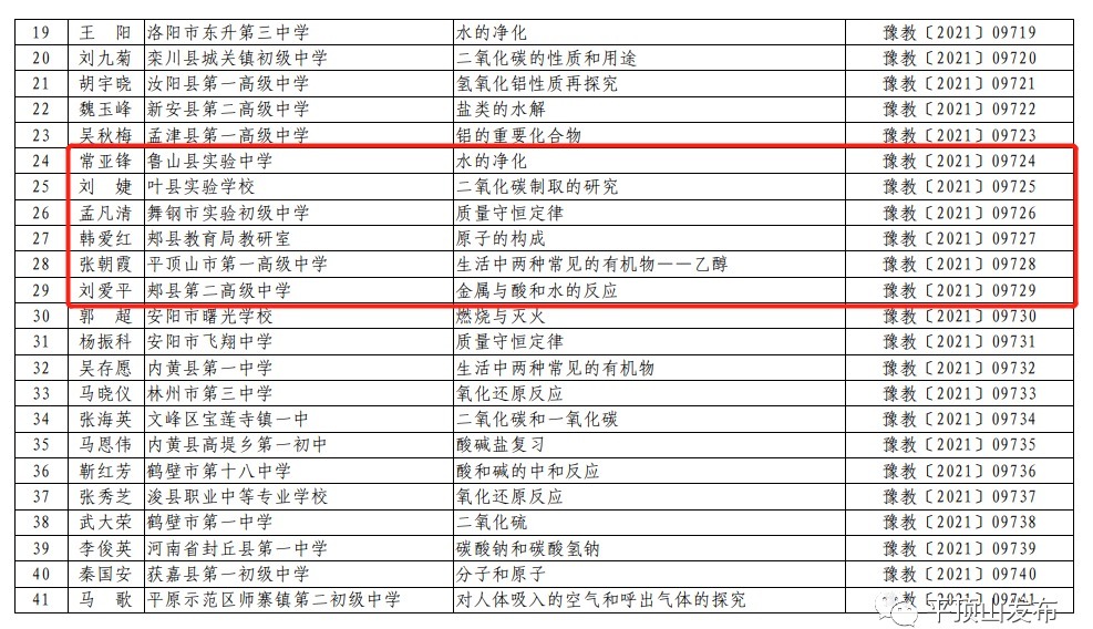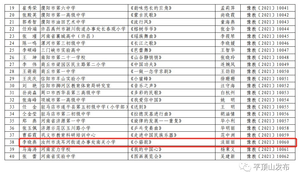 “2020年河南省普通中小学优质课教学评选分学科教师获奖名单”
