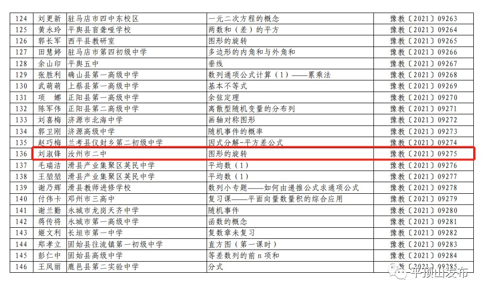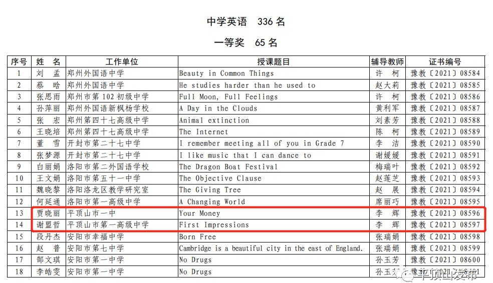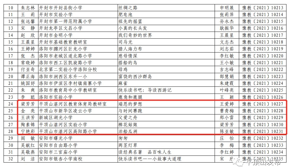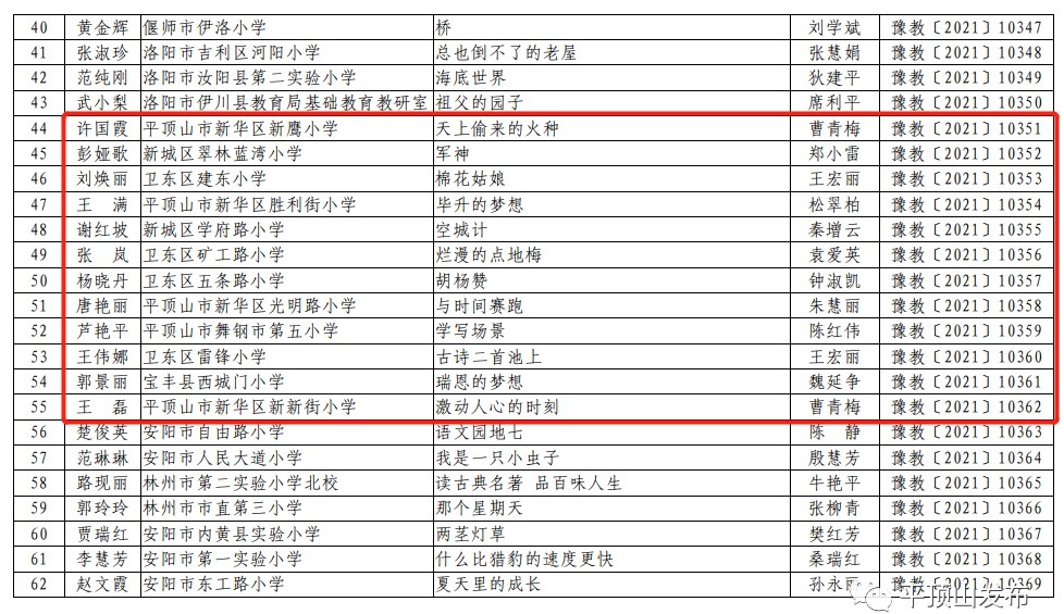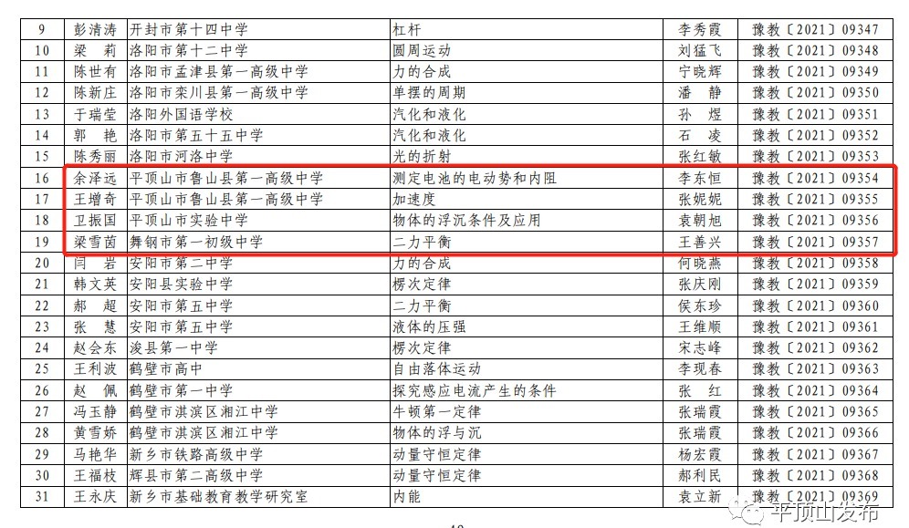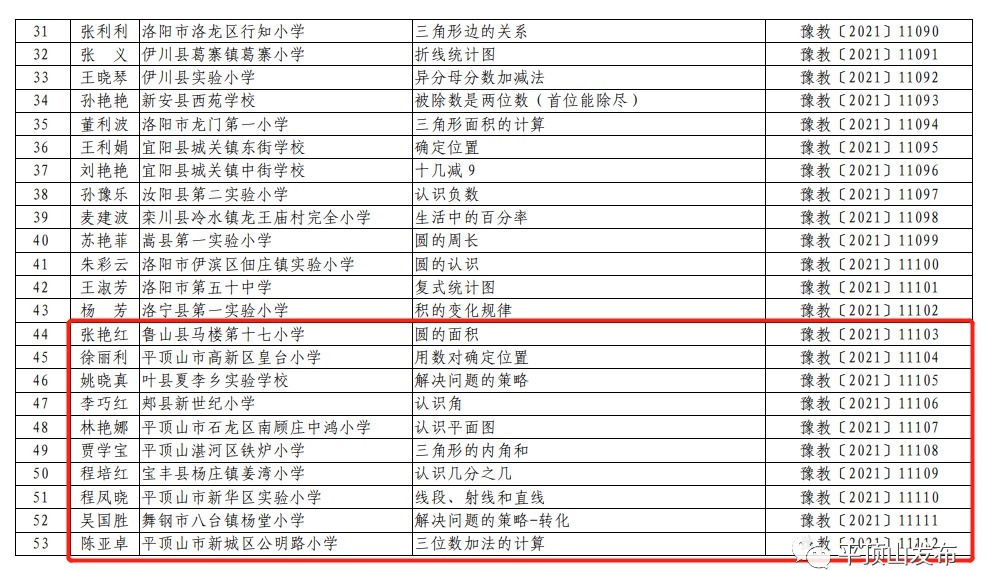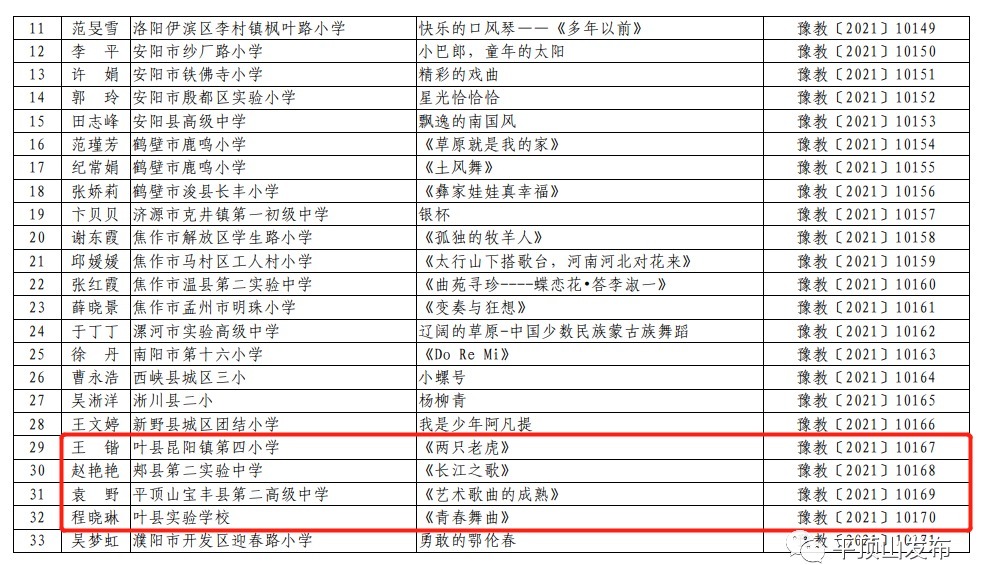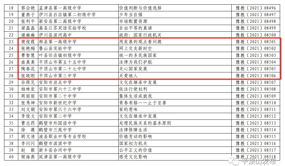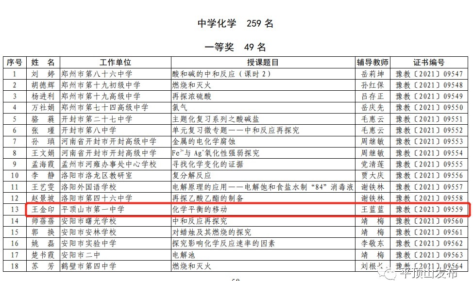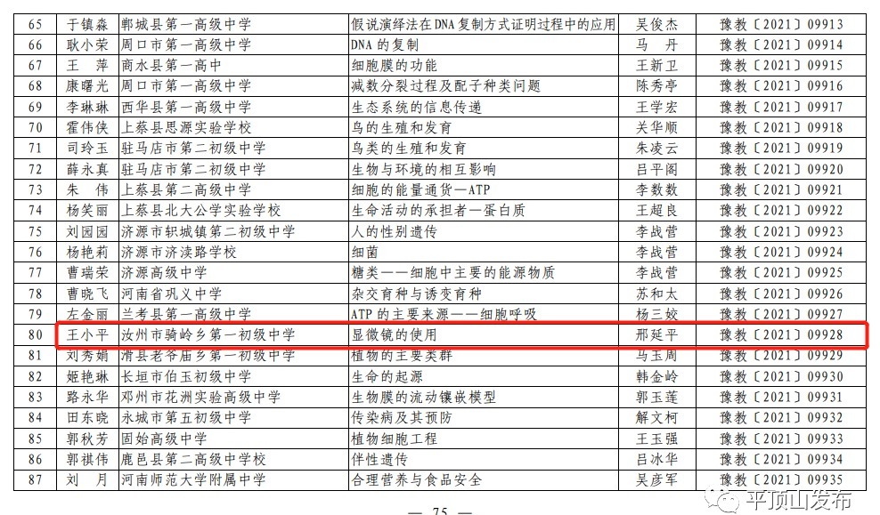 “2020年河南省普通中小学优质课教学评选分学科教师获奖名单”