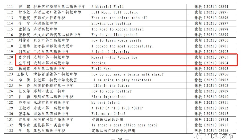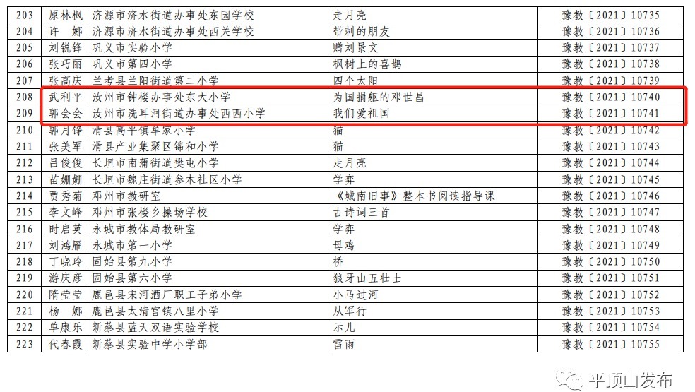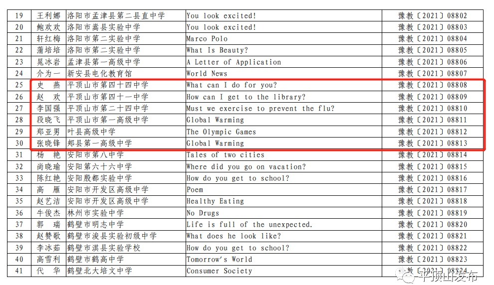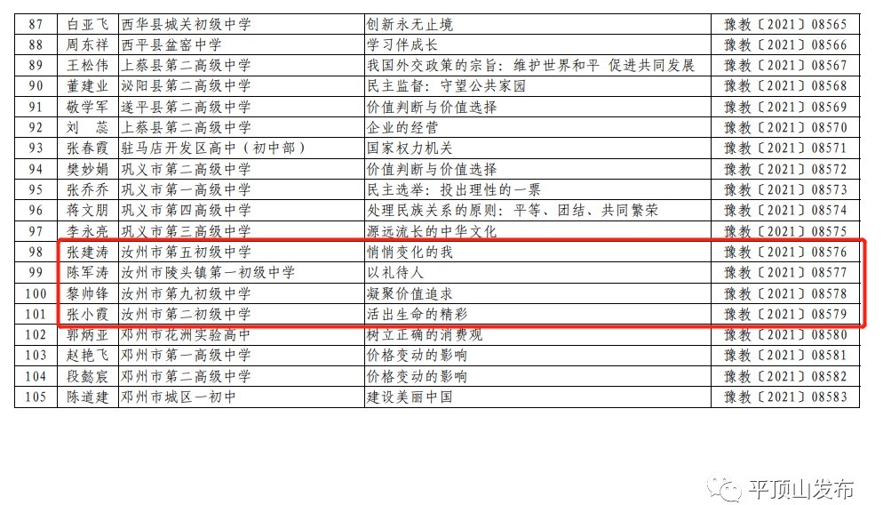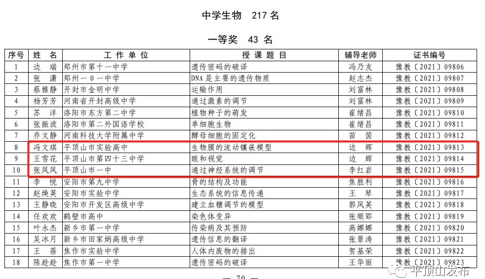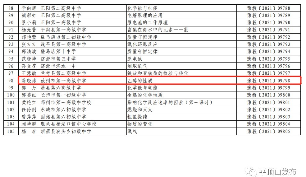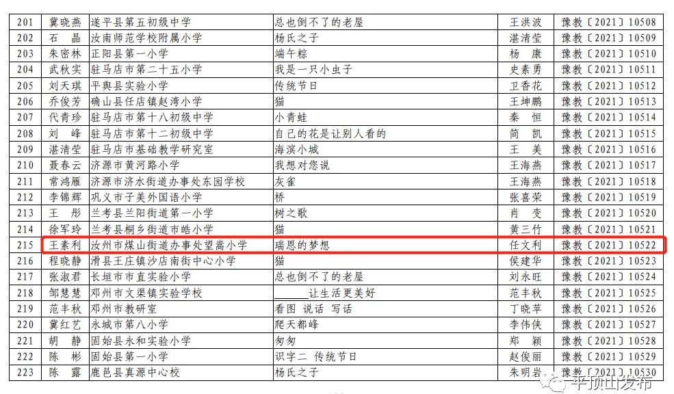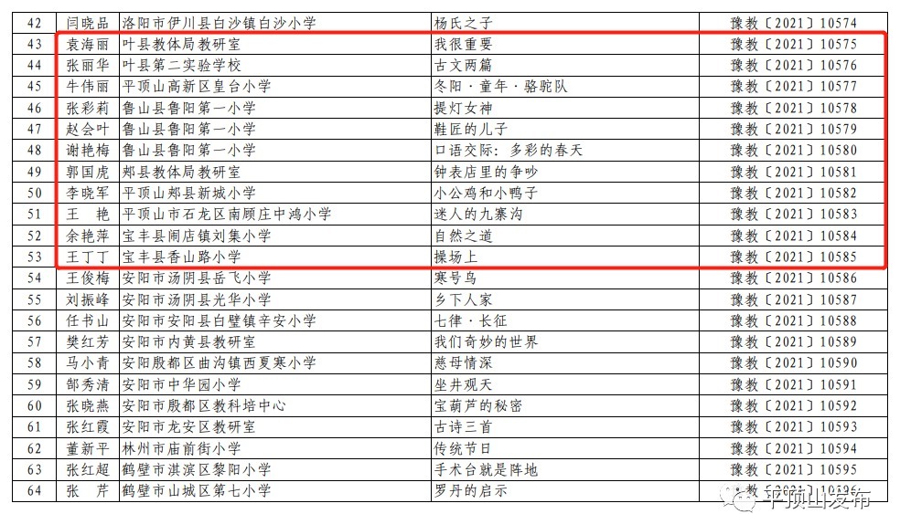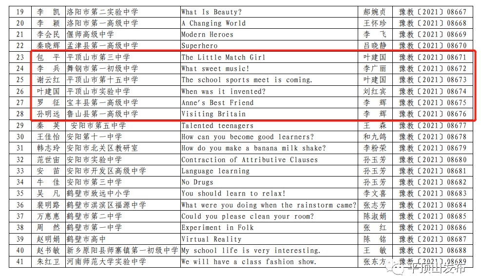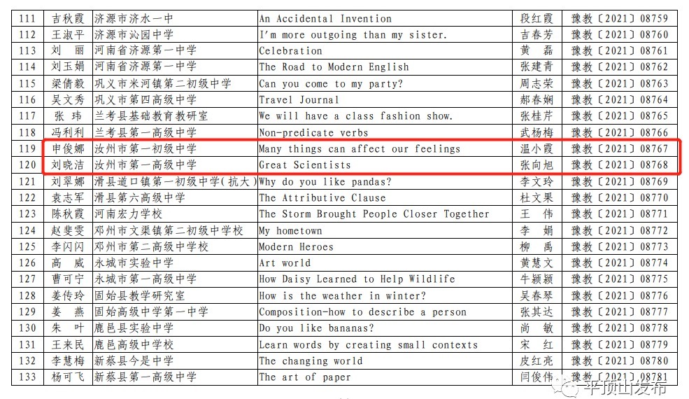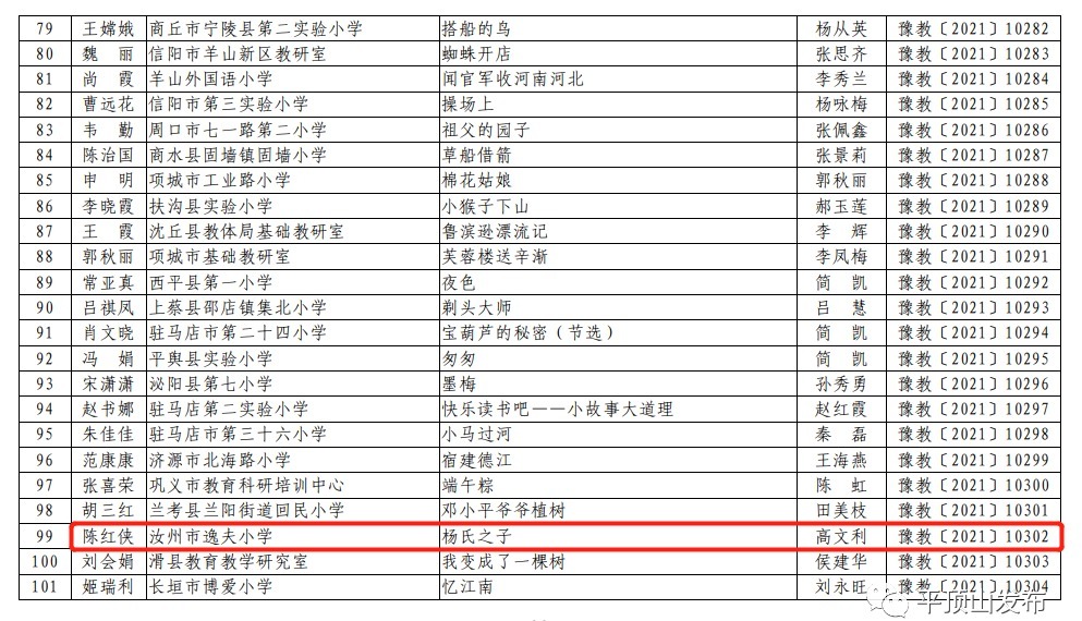“2020年河南省普通中小学优质课教学评选分学科教师获奖名单”